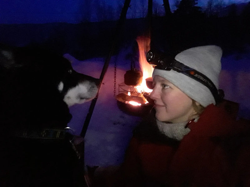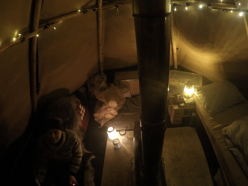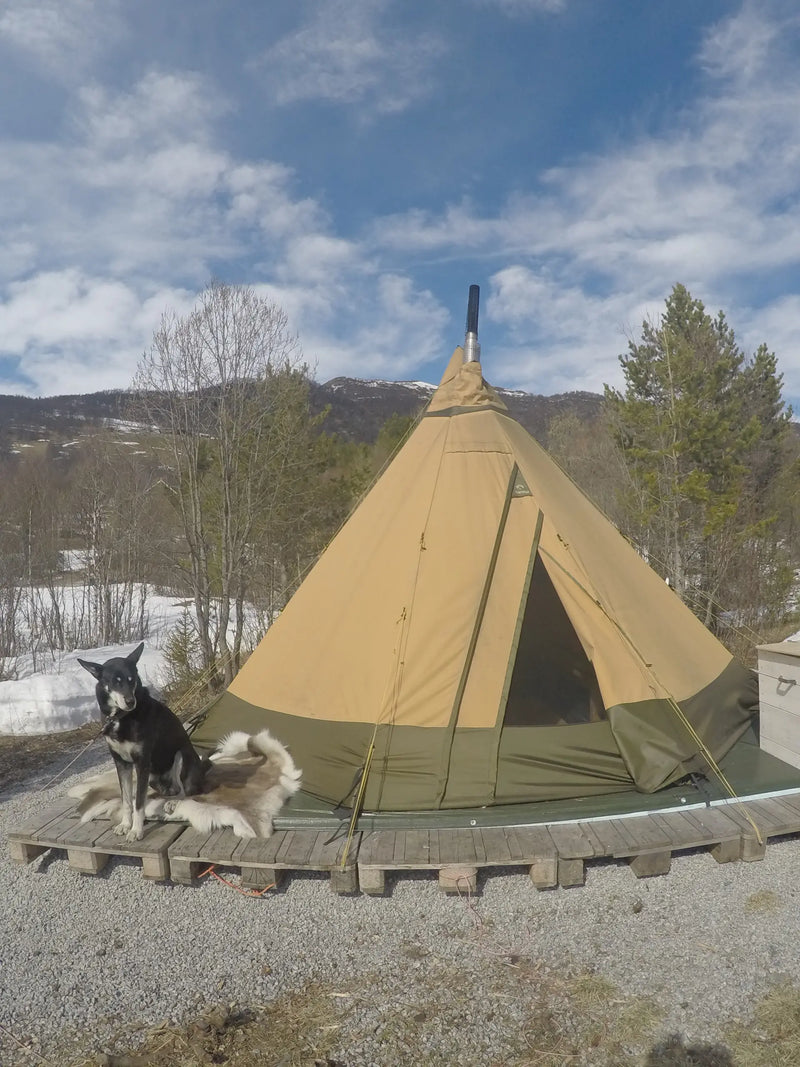 Att höra snön smälta och hur den glider ner på utsidan av tältduken när solen dyker upp på morgnarna, eller fåglarna kvittra på våren, är trevliga ljud att vakna upp till. Eller regnets smattrande, lättnaden över att tältkåtan står stadigt när vinden blir galen utanför. Tyget i bomull/polyester från Tentipi har också blivit viktigt och uppskattat av mig. Framför allt har det skyddat mig från regn, snö och vind och hanterats väl i solen utan att skadas.