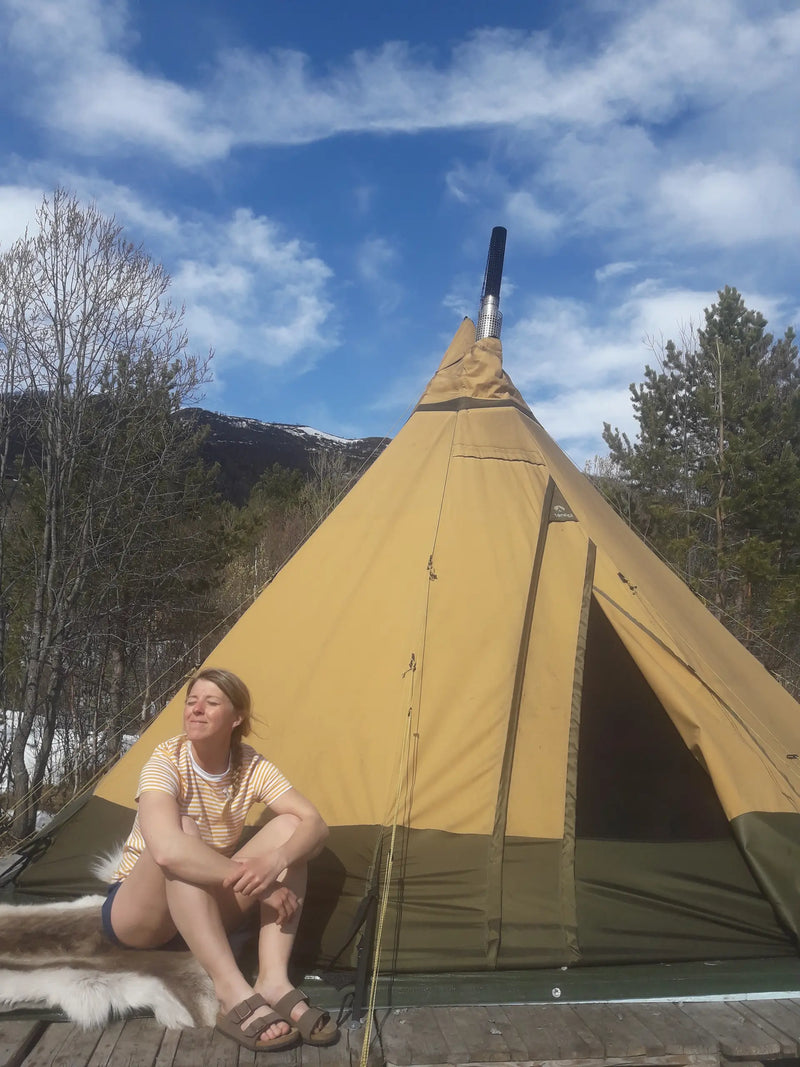 Hanne Nordheim tillbringade nio månader i en Safir 7 cp från Tentipi för att lära känna sin nya mark där hon skulle bygga ett hus. Tanken var också att ta reda på om "Livet är bättre utomhus", som de säger i Norge. Historien börjar i juli, sommaren 2018 och slutar i april 2019. Hanne lärde sig mycket och tycker att en Adventuretältkåta från Tentipi är lika bra som utlovat, och till och med bättre. Hon omfamnar verkligen elementen och fick inspiration till sitt nya hus genom att bo i tältkåtan under olika årstider.