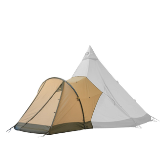 A Tentipi Nordic tipi has astonishing storm resistance due to its symmetrical shape and heavy-duty construction. Therefore we have not made the porch an integrated part of the tent but designed it to be easily attached and removed. This also makes it possible to reduce the weight. You can choose either breathable cotton/polyester or lightweight fabric.