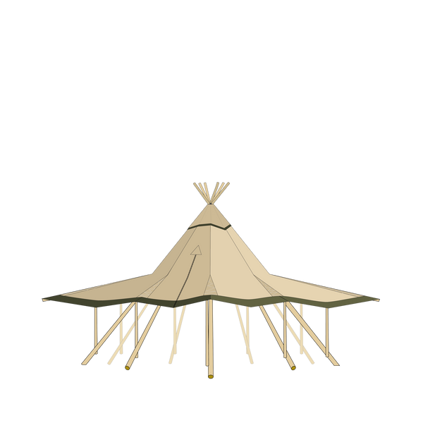 It can be pitched all sides down, all sides up, or a combination of both. It is this flexibility that enables multiple Stratus tipis to be linked in limitless configurations