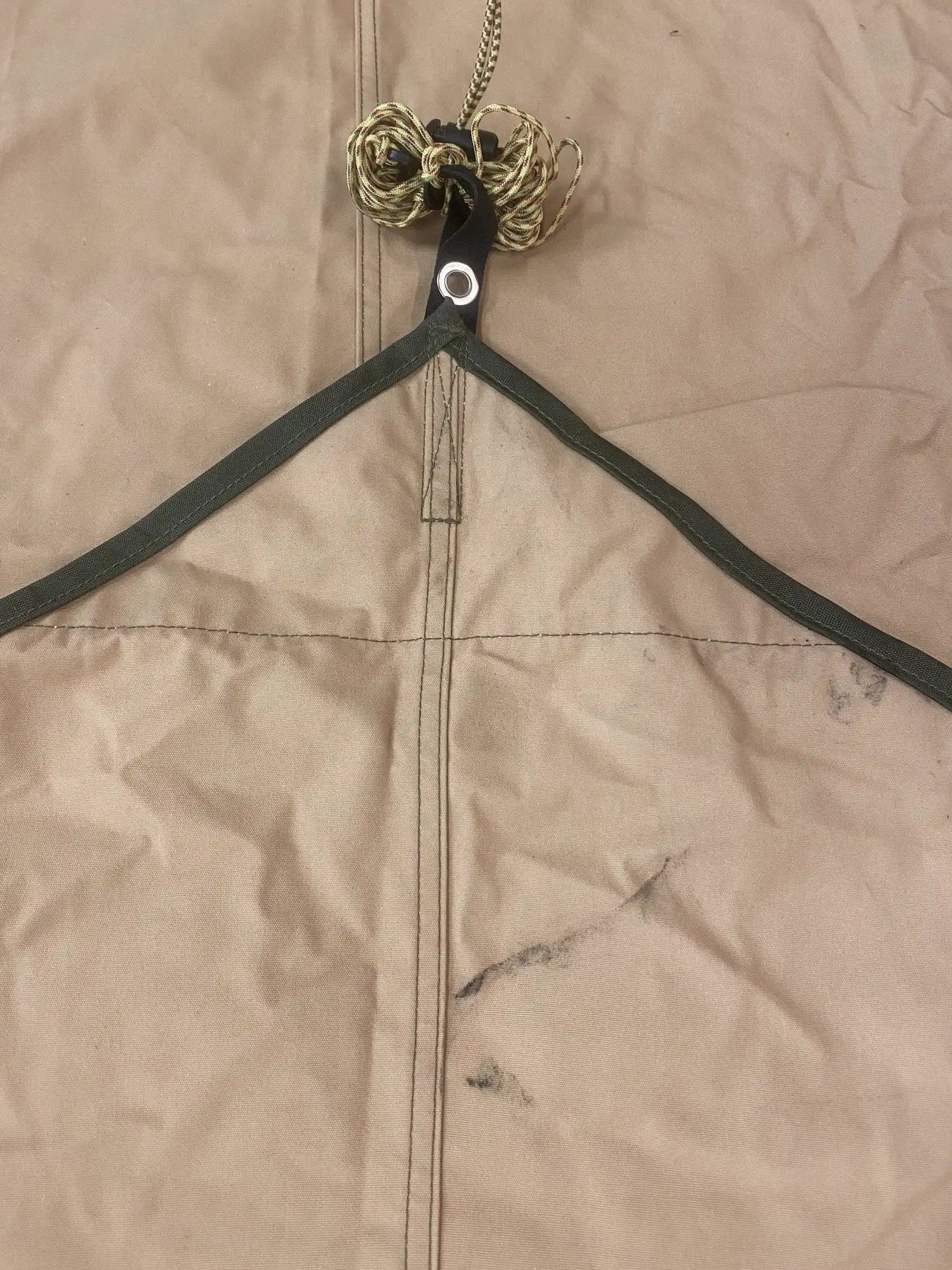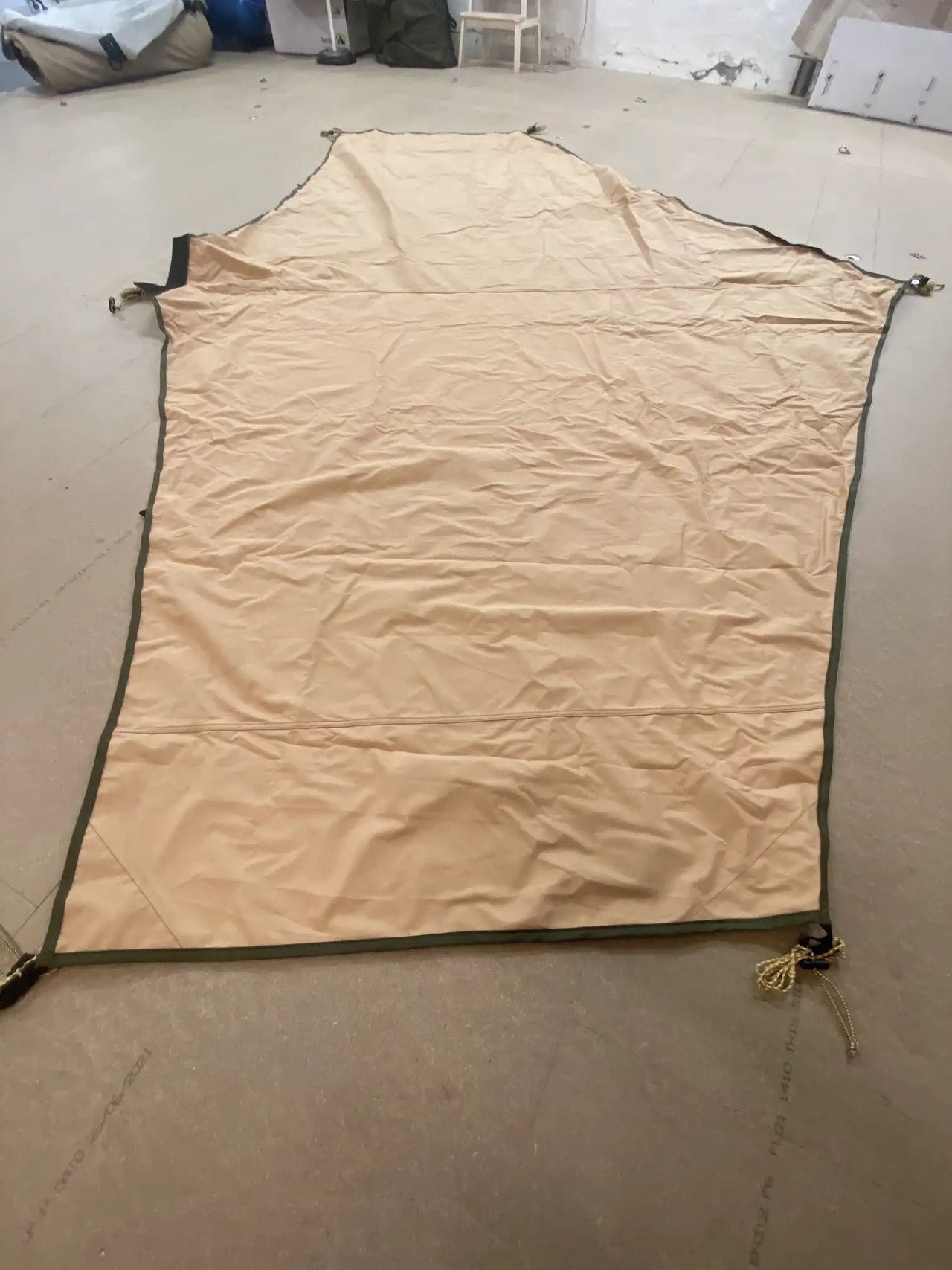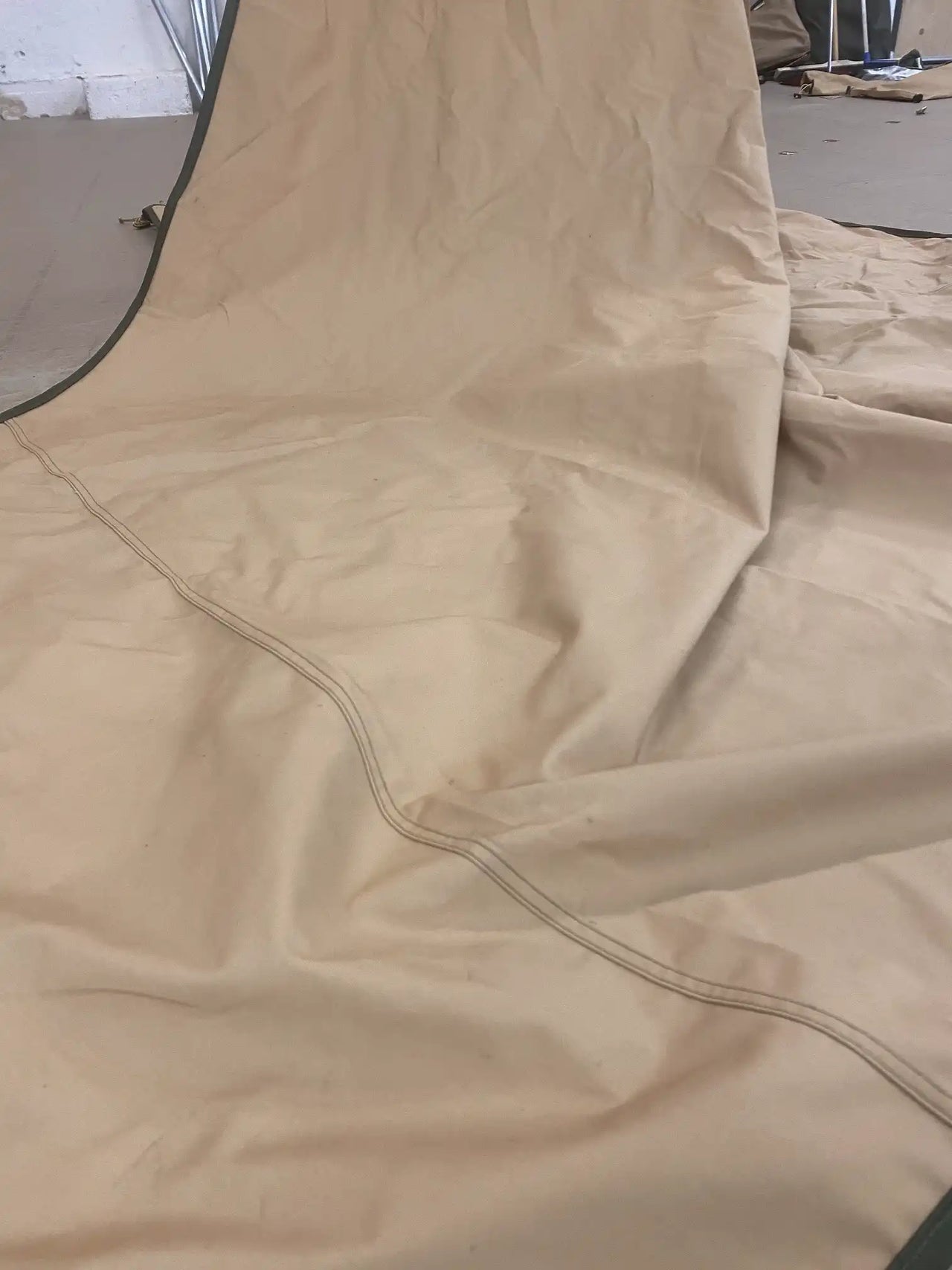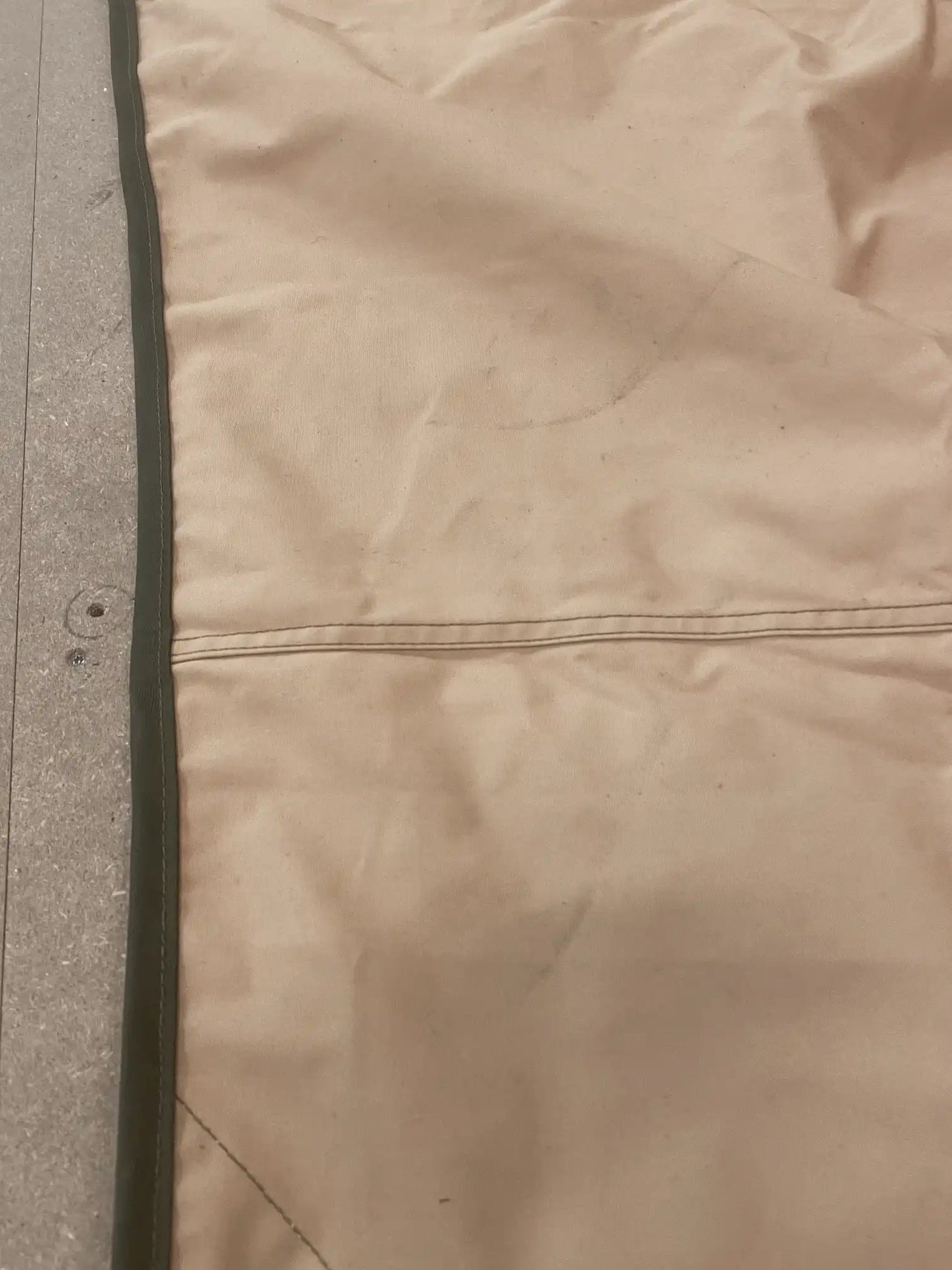 Tarp i mycket fint skick som använts utomhus några gånger. Några mindre smutsfläckar och någon lite större på ovansidan. Undersidan väldigt fin. Levereras med helt nya oanvända spikar.