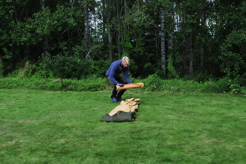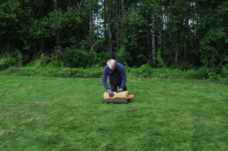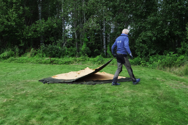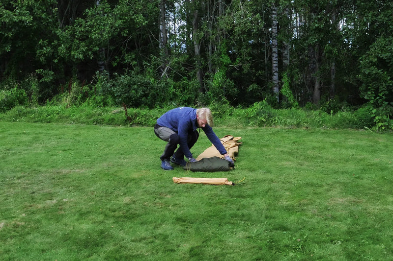 Lägg samman de två raderna och vik ihop tältduken över dem så att den blir hälften så bred.