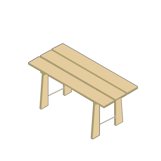 Borden och bänkarna är 155 centimeter långa och lämpliga för 4–6 personer. Möblerna passar i de mindre tältkåtorna eller där man önskar att möblera i grupper med annorlunda former, som långbord eller fristående från varandra.